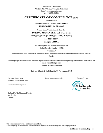 We have strict control procedures to ensure that our products meet the?requirements of REACH regulations of EU and EEA. We could supply certificated?recycling and GRS materials including all kinds of fabric and accessary as well as?padding according to customer’s requirement.